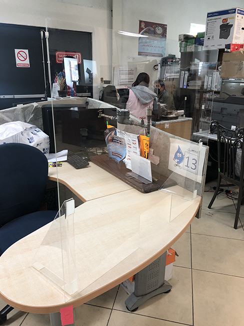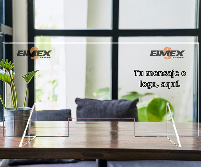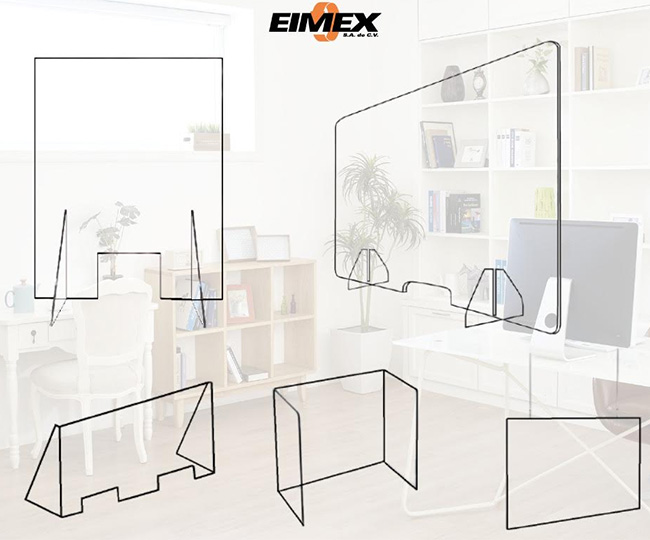 Las mamparas anti contagio de EIMEX, son unas pantallas o láminas de material transparente, principalmente de metacrilato, que actúan como una barrera frente al contagio de Covid-19.​